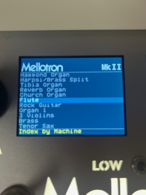 My Mellotron M4000D, designed to look like an M400 without its base cabinet, came with 100 sounds to choose from, and I can switch between them instantly. The sounds are from the original master tapes of the Mellotron and its similar predecessor tape-replay instrument, the US-made Chamberlin. The sounds are uncompressed. And if that’s not enough sounds, you can buy hundreds of more original Mellotron/Chamberlin sounds on expansion cards offered by the manufacturer, and you can even have sounds from other tape-replay machines of the era, the Optigan and the Orchestron.