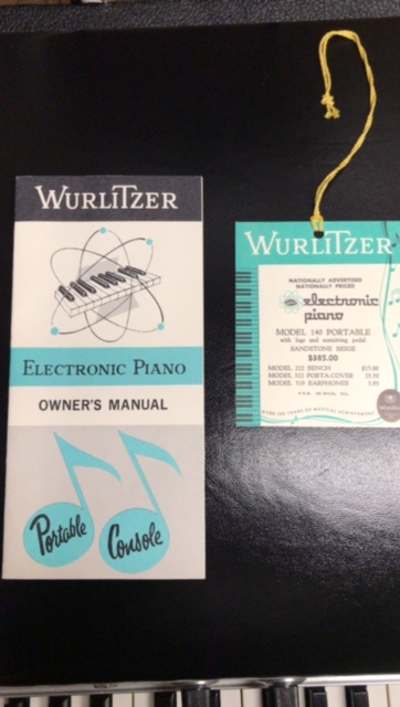 And this was a very special one: Virtually flawless cosmetically. Complete with lid, pedal, music stand, legs and matching bench. And the seller even had a copy of the original schematics and a Wurlitzer warranty envelope with the the owner’s manual and, believe it or not, the original hang tag. Cool!